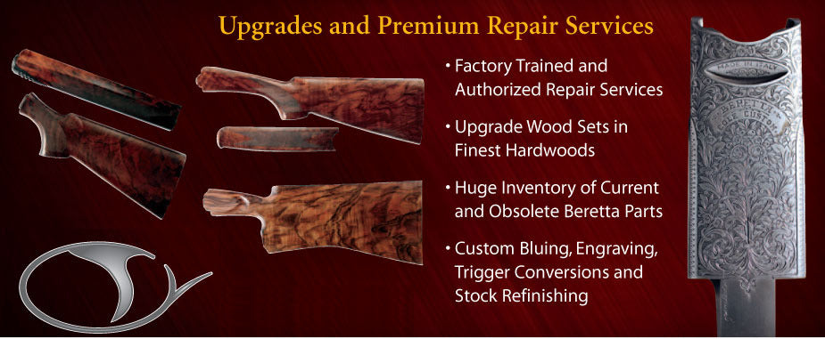 We are a Beretta dealer; a maker of best quality sidelock, external hammer, and Anson-Deeley system shotguns. We are a full time facility offering best-quality gunsmithing services in our modern shop equipped with high quality machinery and tooling. -